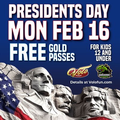 On President’s Day, Monday, February 16th, Kids 12 & under get FREE Gold Passes which includes admission to Volo Museum and Jurassic Gardens! All kids must be accompanied by an adult (18 years old) or parent/guardian.