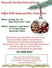 Santa & Mrs. Claus are back at the Cook House! Stop by and take a selfie or two with them. Experience some old-fashioned holiday fun! Check out our tree, crafts for the kids, light refreshments, and visit our gift shop with new items. Event is free but donations are appreciated. Fun Family Event!