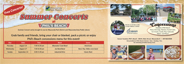 Summer concert series is brought to you by Wauconda Park District and Wauconda Area Public Library.