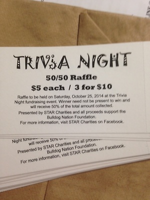 $5 each / 3 for $10 Raffle to be held a the Trivia Night